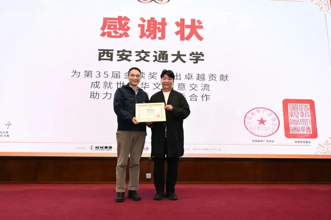 周智秘书长向西安交通大学颁布感激状,新学院做为承办单元代表学校接过了这份荣誉。